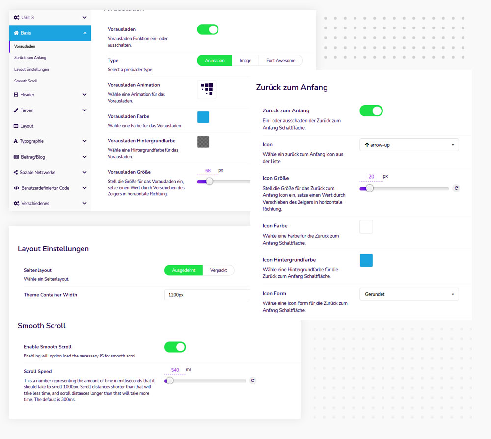Wenn Sie Smooth Scroll aktivieren, wird die Datei Smooth-Scroll.js geladen, die ermöglicht es sog. Onepage Designs zu erstellen.
