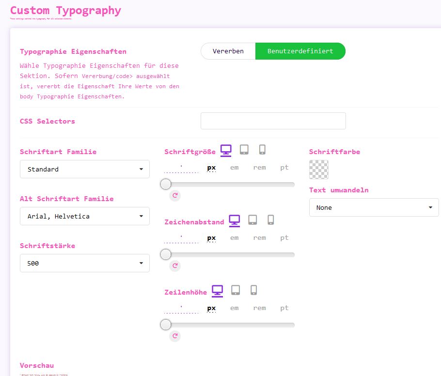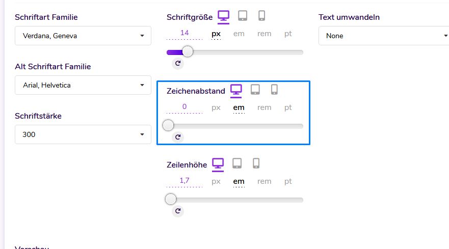 Spielen Sie mit der Schriftfamilie, Größe, Transformation, Stil, Dekoration, Zeilenhöhe und Buchstabenabstand, um den Benutzern auf Ihrer Website ein anderes Erscheinungsbild zu verleihen.